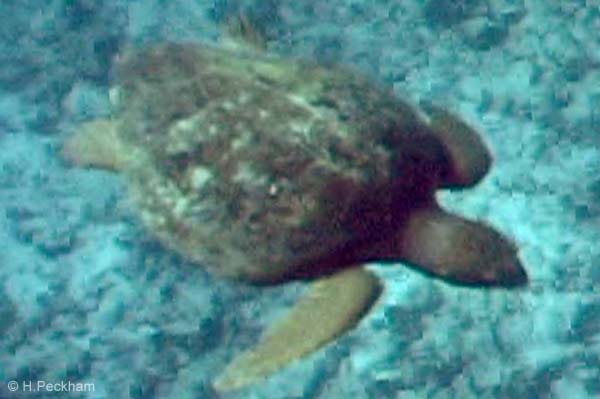 The Loggerhead (Caretta caretta) is very rare in the Cook Islands. It is easily confused with the Green Turtle. Loggerheads reach maturity at about 80cm carapace length when they are 15to 20 years old. They sometimes live 50 years and reach 120cm in length. They are carnivores throughout live, feeding on bottom-dwelling invertebrates, such as crabs and shellfish, and on small pelagic animals.