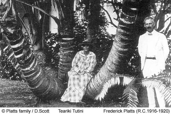 In 1906 and 1907 Howard Greig, Survey cadet, was in charge of gangs planting Conconut Palms on Takūtea. He found a nut with seven shoots and brought it back to Rarotonga in September 1907. The Resident Commissioner, Colonel Gudgeon was so impressed that he had it planted in front of the Administration offices in the presence of all the students of Tereora College, including Nia Rua.
