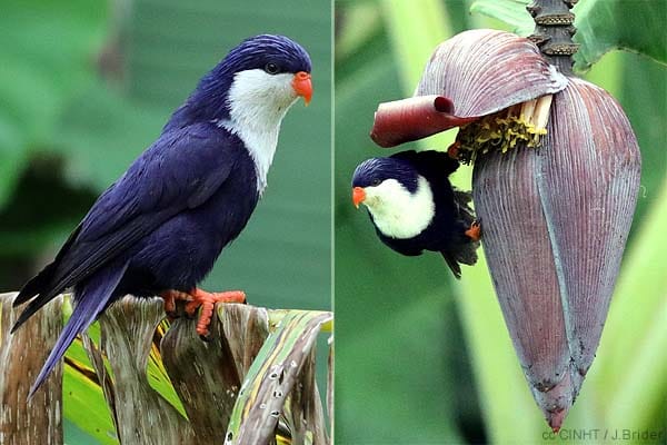 The birds of special international interest are the six endemic landbirds, which are all listed as “Vulnerable” or “Critically Endangered” in BirdLife’s Birds to Watch 2. The other bird of special international interest is the introduced Blue Lorikeet, which is endemic to neighbouring French Polynesia, where it has decreased its indigenous range from more than 20 islands at the turn of the century to six islands today.
